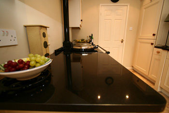This kitchen is an example of a customer-specified bespoke kitchen; the hand-painted units and dark Granite work surfaces were all produced according to the customer's requirements.