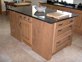 This customer specified oak units with a Star Galaxy Granite work surface, which has natural copper content.